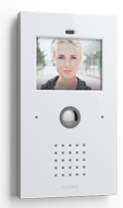 SIP-Video-Terminal mit hemisphärischer 180° Kamera und 8 MP Auflösung. Integriertes 3.5“ Touch-Display zur flexiblen Anzeige von mehreren Klingeltastern oder Funktionen (Mehrparteienfähig). Zutrittskontrolle mit PIN und/oder RFID-Schnittstelle (MIFARE® DesFire® EV2). Anschluss und Stromversorgung über Netzwerkkabel (PoE) oder 24 V AC/DC über Klingeldraht und WLAN. Integriertes potentialfreies Relais (max. 24 V/1 A) und 2 potentialfreie Eingänge. USB-C Anschluss für Erweiterungsmodule. Erweiterungsmöglichkeiten mittels integriertem Bluetooth® frogblue Mesh-Interface. IP54 wetterfest. Oberfläche: Kunststoff; Farbe: weiß, silber, anthrazit